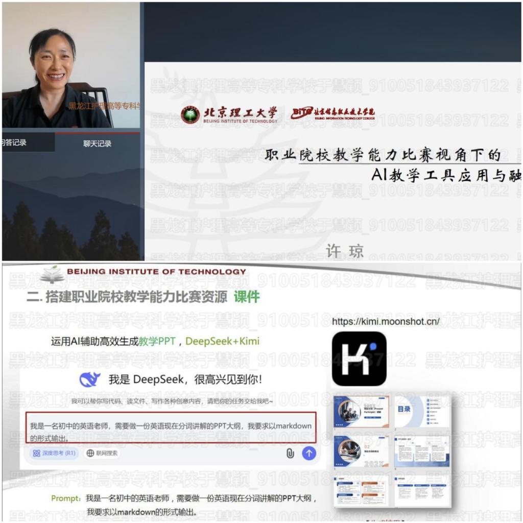 数智赋能,融合创新。第二场培训邀请北京信息职业技术学院许琼教授以《职业院校教学能力比赛视角下的AI教学工具应用与融合实践》为主题,深入剖析了人工智能技术在当前教育教学及竞赛中的应用趋势。结合生动案例,展示了如何有效运用AI教学工具优化教学设计、提升课堂互动与教学成效,为参赛教师提供了技术融合创新的思路与方法。