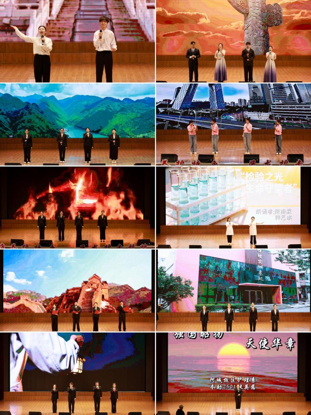 本次比赛自启动以来,得到了全校学生的积极响应和热情参与,共收到初赛作品128部,经过复赛的激烈角逐,共有10支优秀队伍脱颖而出,入围决赛。决赛现场,选手们以声为笔,以情为墨,通过作品,抒发了对祖国的热爱、对时代的呼应、对医疗事业的执着以及对学校“守正出新、舍我其谁、追梦天使”办学精神的生动诠释,展现了新时代龙护专学子立志报国、挺膺担当的坚定信念和青春风采。
