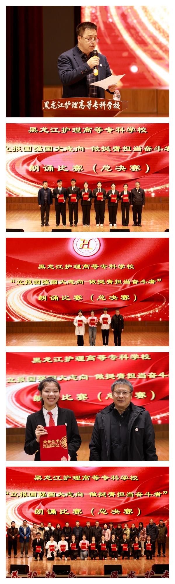为进一步激励广大青年厚植家国情怀、勇担时代使命,展现新时代龙护专学子昂扬向上的精神风貌,12月1日,我校“立报国强国大志向,做挺膺担当奋斗者”朗诵比赛总决赛在天使剧场举行。校党委书记田国忠、副校长杨丽妲、纪委书记于新宇、副校长于沛君现场观看本次比赛。