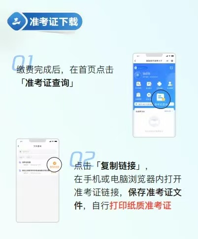 温馨提示:若在缴费完成后没有直接跳转至首页,须重新扫码进入页面,点击“准考证查询”下载准考证。
