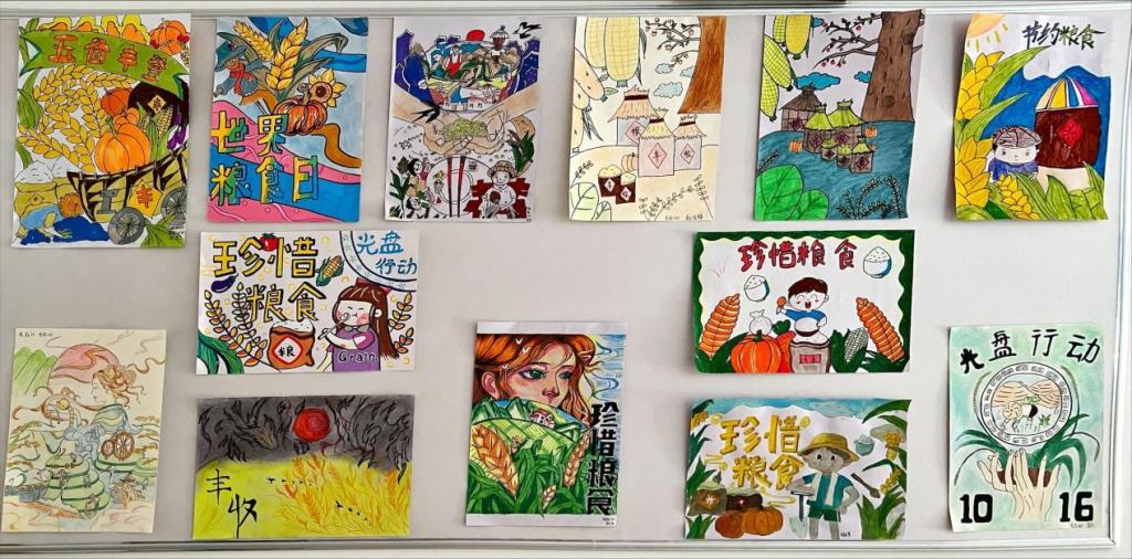 2.画好一次海报:展开珍爱粮食为主题的手绘海报比赛。