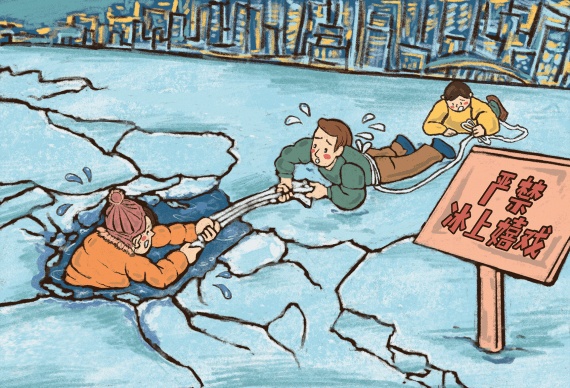 春节过后,天气渐暖,同学们不要私自或结伴到结冰的河面溜冰、玩耍,不要在结冰的场地上推搡追逐、嬉戏打闹,防止溺水事故的发生。若不慎发生溺水事故,要及时向附近的成年人大声呼救,同行的未成年学生、同伴不得自行贸然施救,避免因盲目施救造成更大伤亡。