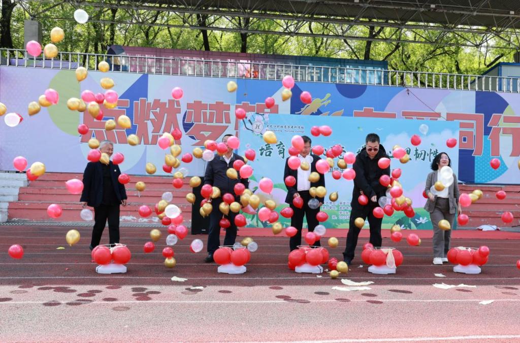 校领导共同启动下,舞台中央的氦气彩球被划破,千只气球承载着“放飞心灵阳光,传递温暖能量”的祝福腾空而起,将活动推向高潮。启动仪式后,校领导与师生移步特色项目互动区,在互动区感受学生的活动热情,“球行万里”的团结协作、DIY彩绘区的压力疏解、“我是演员”的心有灵犀,压轴环节“动感颠球”中,校领导指导学生合力牵拉鼓绳,生动诠释“心聚力,共成长”的理念。