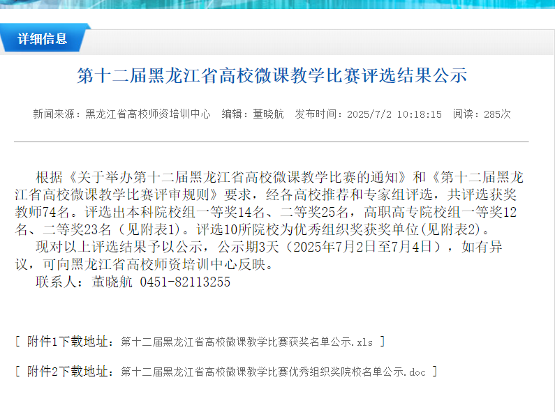 在黑龙江省教育厅、黑龙江省高校师资培训中心联合主办的第十二届高校微课教学比赛中,我校临床医学系教师刘春燕凭借作品《古今话肥胖:从<诗经>到科学体重管理的健康密码》,以综合评分第一的优异成绩,荣获一等奖。